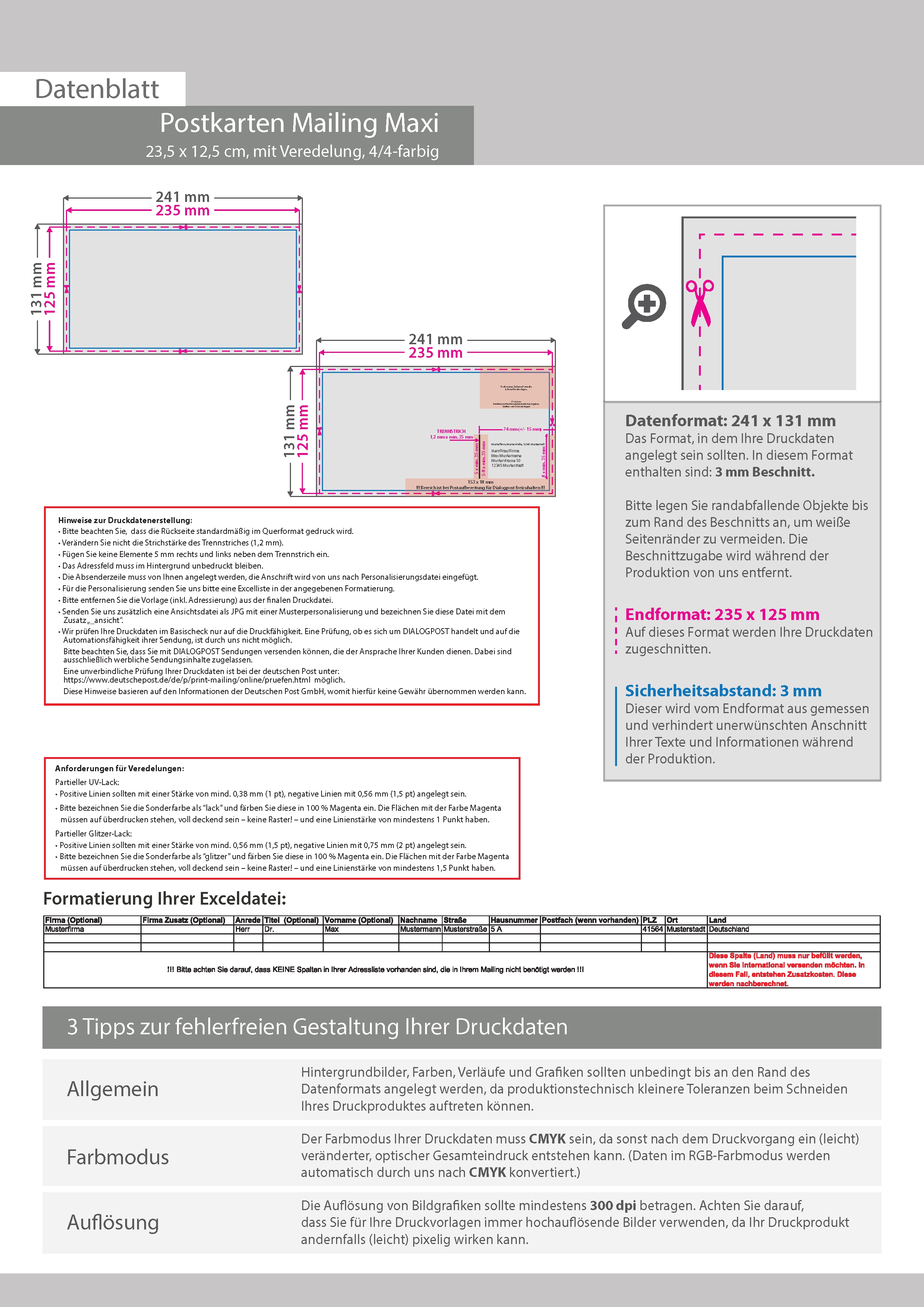 Postkarten-Mailing Maxi Quer (23,5 cm x 12,5 cm) mit Hochglanz-UV-Lack