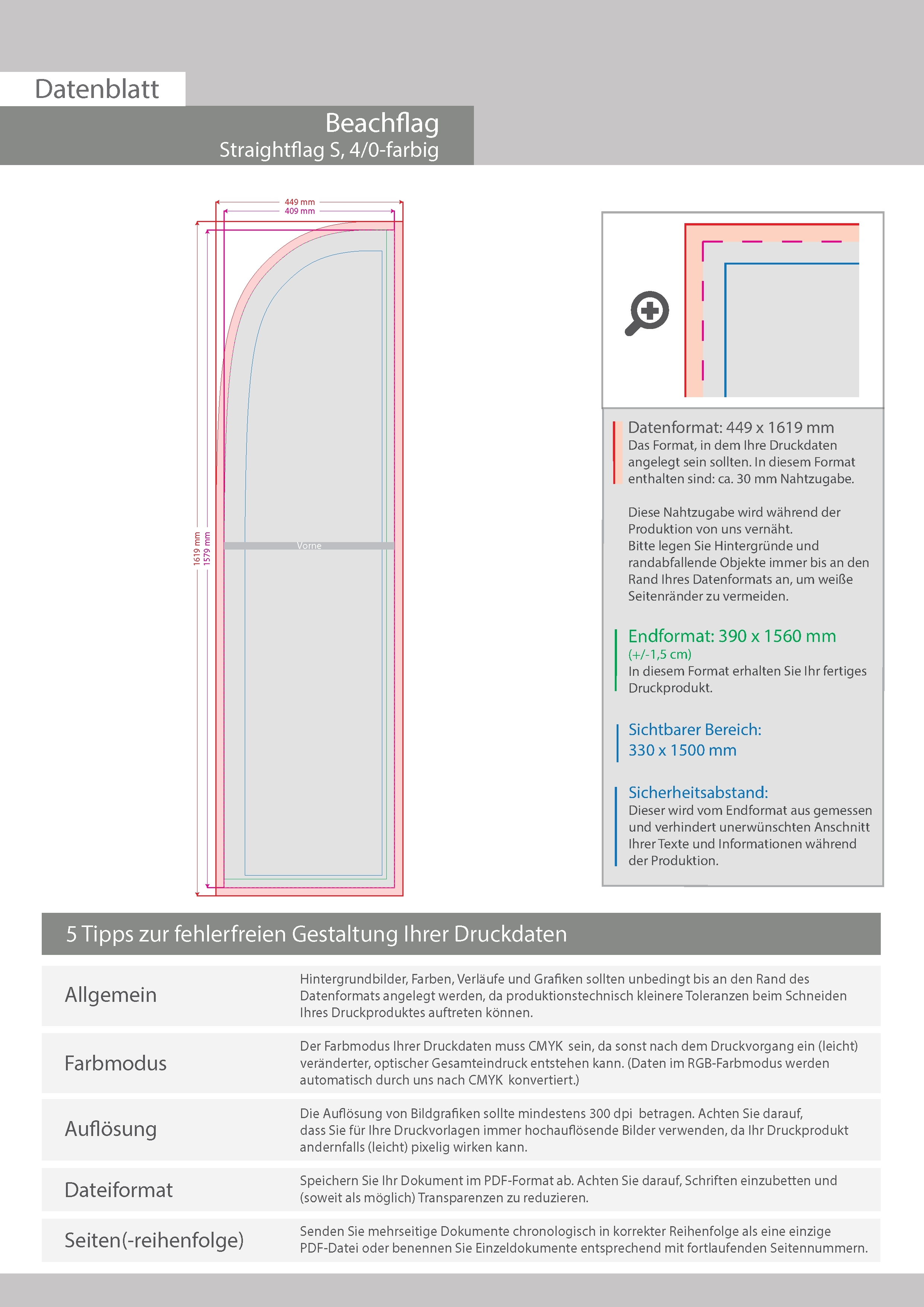 Ersatzdruck für Beachflag Premium-Straight Small, 4/0-farbig bedruckt