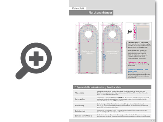 Flaschenanhänger 71 x 190 mm mit Falz, 4/4-farbig beidseitig bedruckt