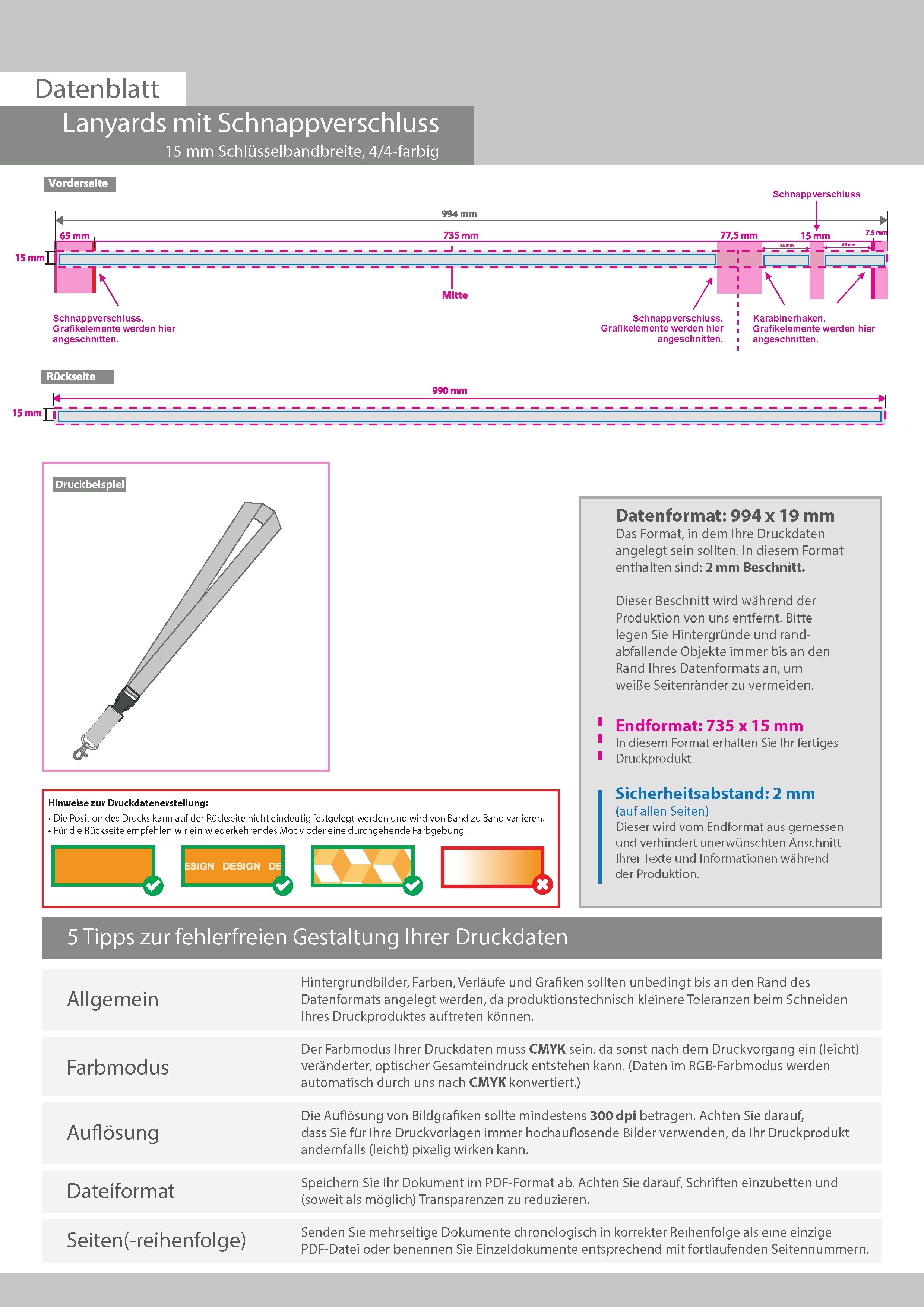 Lanyards mit Schnappverschluss, 15 mm Schlüsselbandbreite, 4/4-farbig beidseitig bedruckt